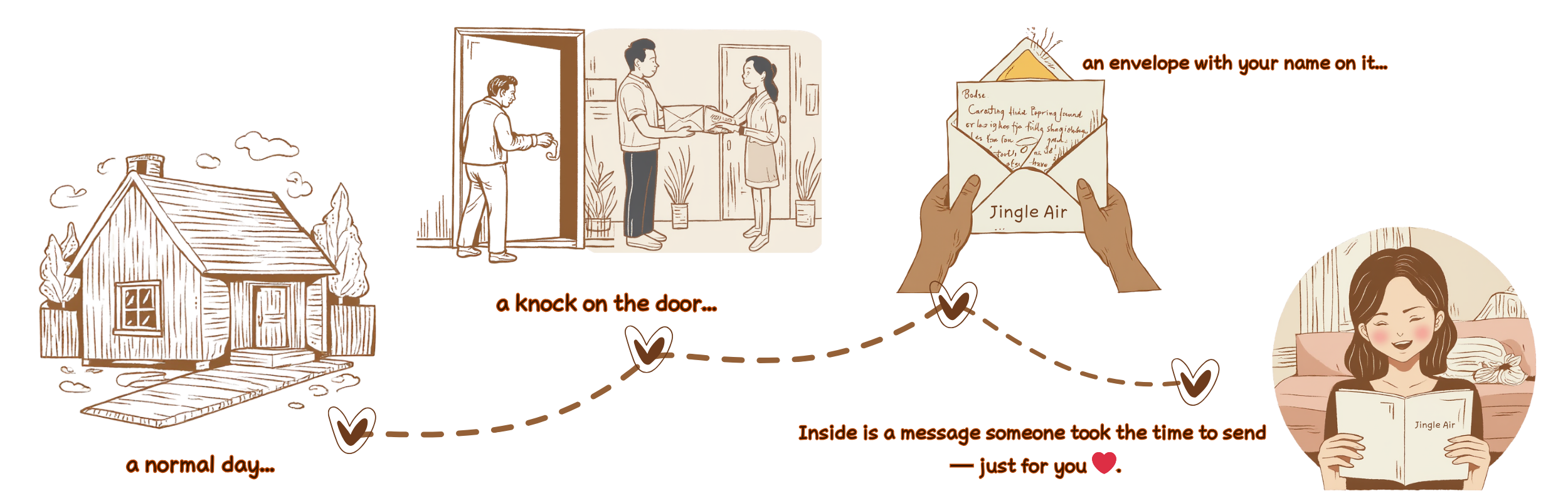 JingleAir helps you send real greeting cards and handwritten love to the people who matter most, delivered right to their door like a warm Paper Hug.