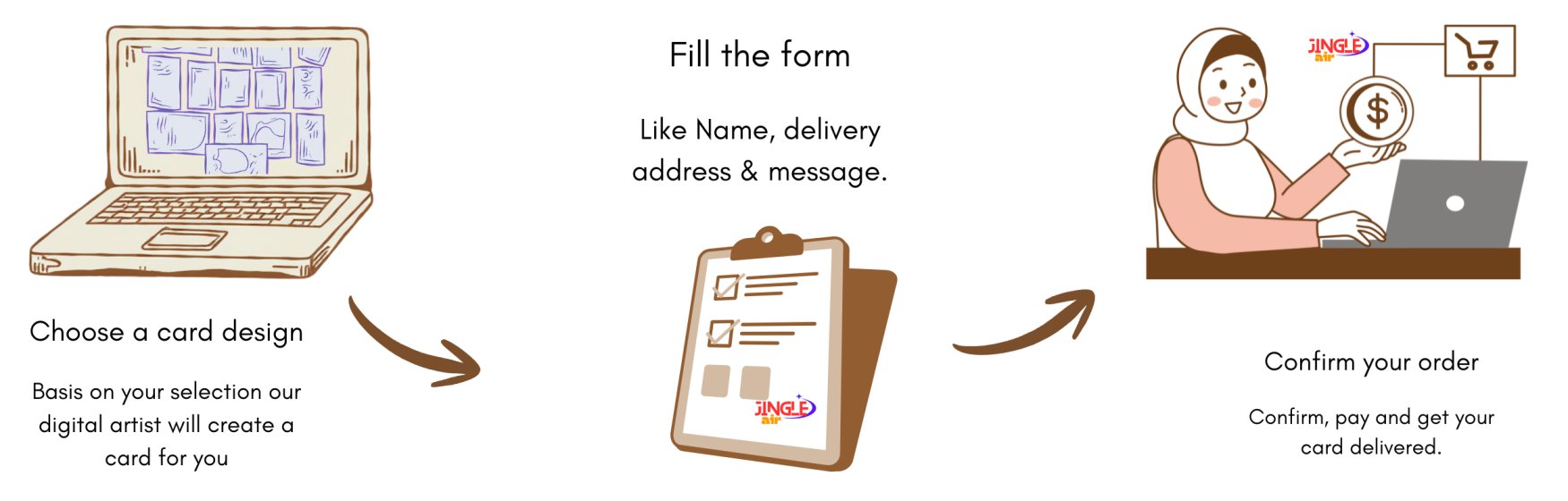 "JingleAir turns your words into beautiful greeting cards and delivers them to the people who matter most."